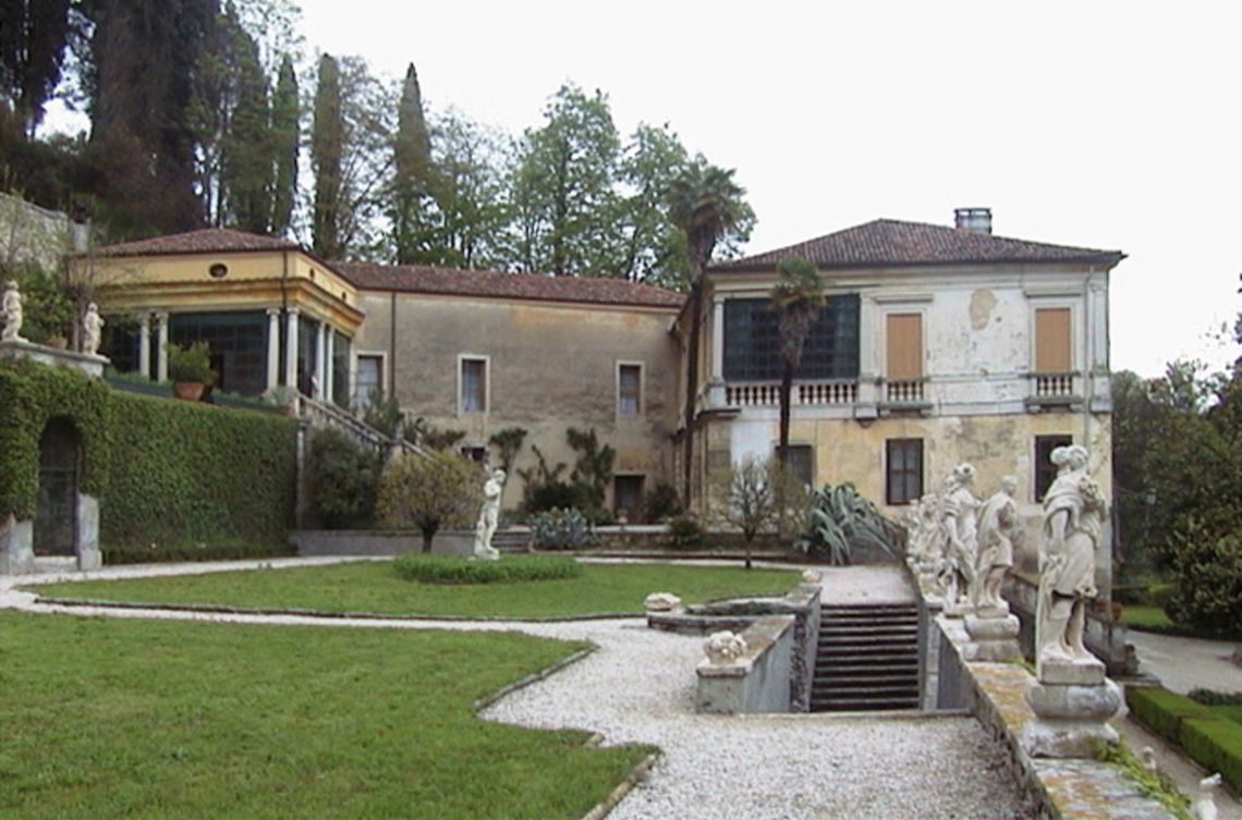 - Osservazioni: Sul lato occidentale della villa si sviluppa un ampio giardino, organizzato in cinque terrazzamenti ed attraversato da una scalinata ritmata ad ogni rampa da pilastri con sculture. Nel 1830 il conte Giovanni Da Schio trasforma parte del giardino in parco all'inglese.
