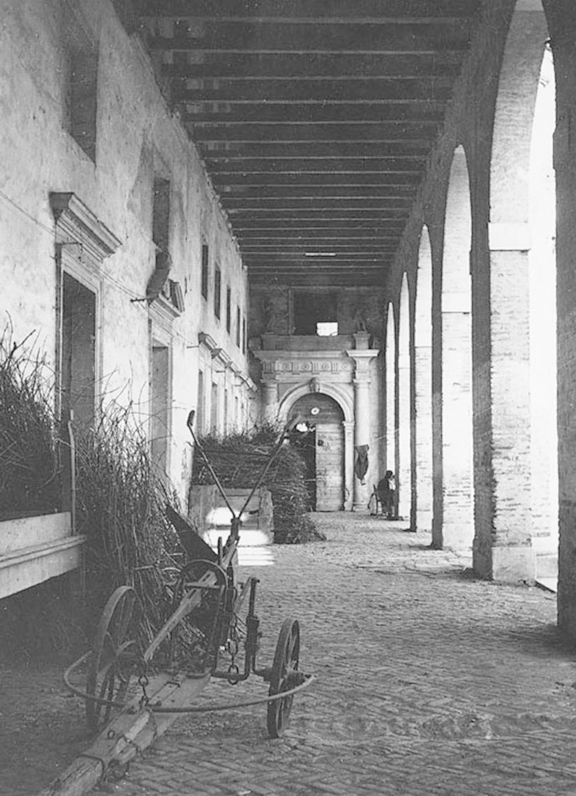 - Descrizione: Sono presenti quattro statue sopra la linea di gronda del prospetto principale (verso l'interno); il fronte su strada è coronato da quattro obelischi.