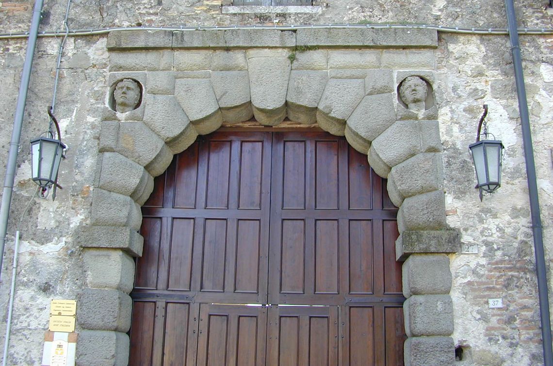 - Descrizione: Lungo la parte alta della parete si sviluppa un fregio che vede una fascia a grottesche interrotta da ovati contenenti gruppi di figure con storie di soggetto non facilmente identificabili. All'altezza dell'ingresso, infine, un finto quadro raffigurante "Santa Caterina".