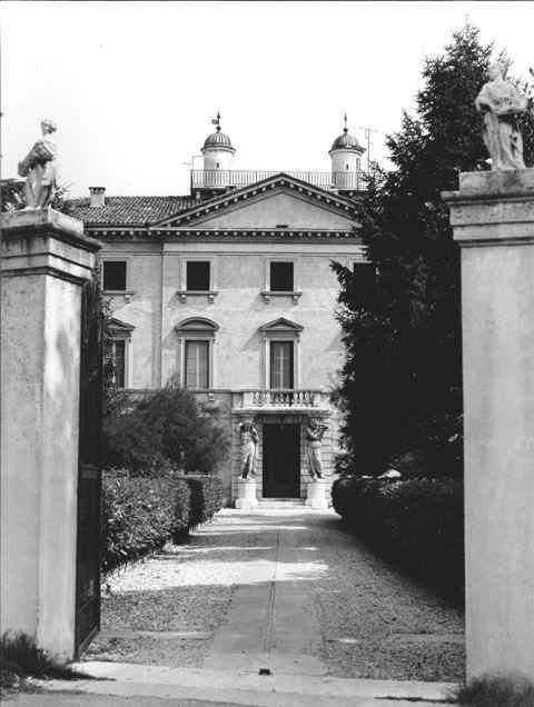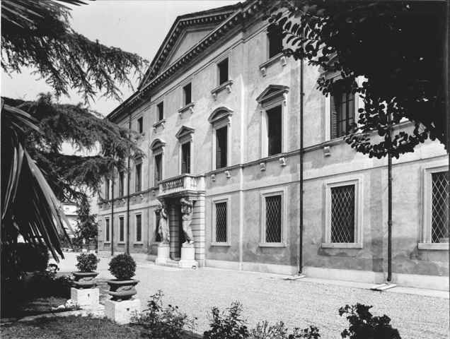 - Osservazioni: Prospetto dai caratteri classicheggianti con facciata tripartita ingentilita da frontone centrale. Il portale d'ingresso architravato, è tutto contornato da un rivestimento a bugne poste su basamenti in pietra. L'accesso è fiancheggiato da due grandi cariatidi che sorreggono il balcone del piano nobile.