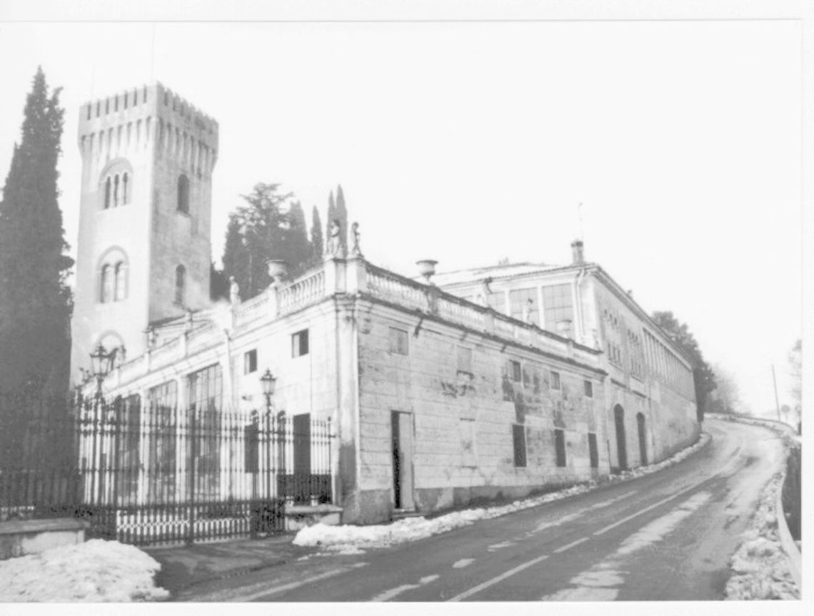 Importante complesso dominicale neoclassico che si compone di due nuclei edilizi costruiti ai piedi di un terrazzamento naturale: a ovest, in asse con la cancellata monumentale d'ingresso, si trova l'imponente volume del corpo dominicale, completato da un'adiacenza porticata che si innesta ortogonale sul retro, delimitando una corte rettangolare sul cui angolo nord-occidentale si colloca l'oratorio; ad est in prossimità dell'ingresso, sorge un ampliamento ottocentesco formato da un'alta torre merlata di gusto romantico che si innesta nella roccia, un edificio porticato con terrazza soprastante, da cui si innalza un'altra struttura con loggia vetrata. Il complesso è arricchito da un articolato giardino all'italiana, mentre un vasto parco si sviluppa a nord-est, seguendo l'ascesa del colle.Specifiche: