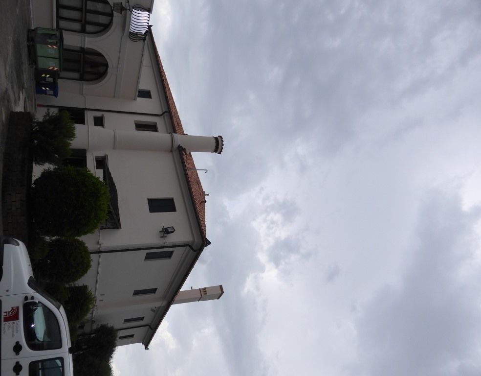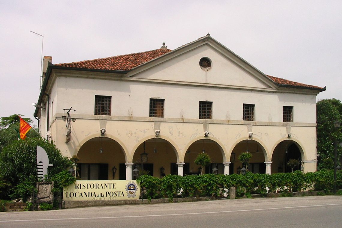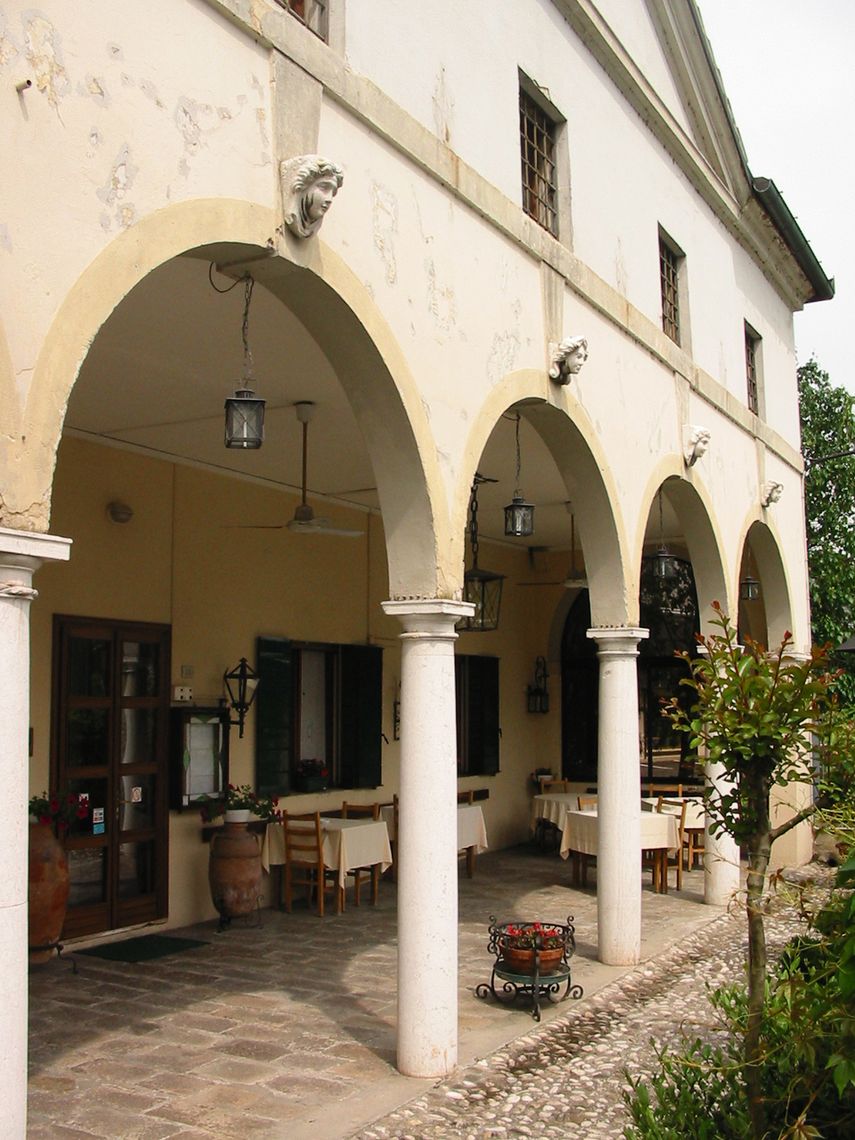 L'edificio a due piani presenta una facciata con cinque archi a tutto sesto al piano terreno su colonne doriche. Un frontone triangolare con oculo conclude la facciata.Specifiche: