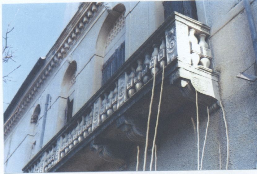 - Descrizione: Balaustre con colonnine in pietra sono poste a parapetto dei balconi. Quella del balcone centrale è suddivisa da pilastrini in cinque settori.