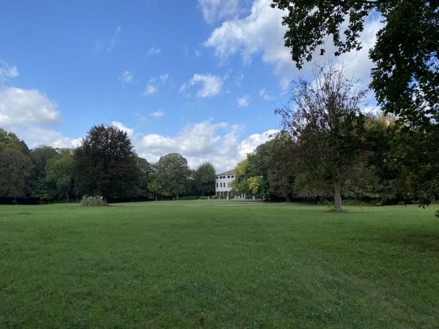 - Osservazioni: Il volume imponente della villa si affaccia su un prato dalla forma ellittica. L'edificio si eleva su uno zoccolo ed ha la facciata scandita da una lunga serie di aperture.