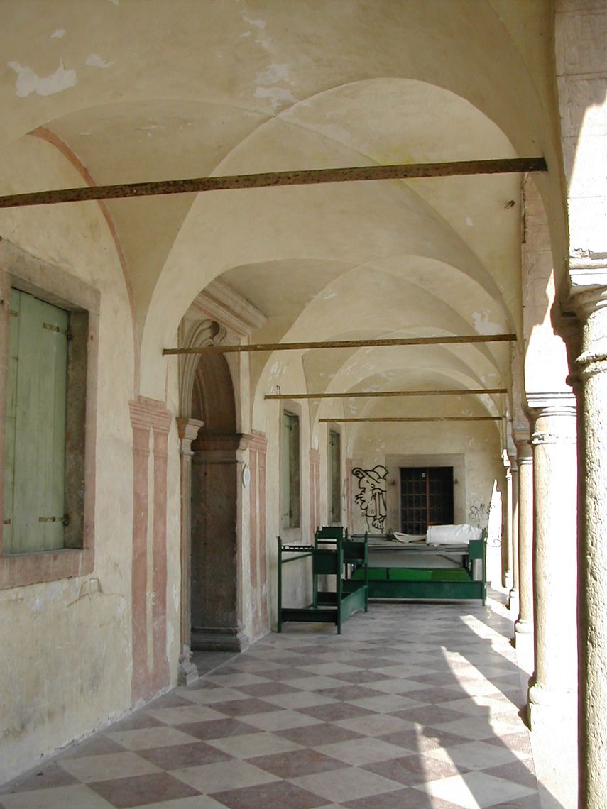 - Osservazioni: La facciata principale, l'unica parte del fabbricato non compromessa dai restauri del terzo quarto del Novecento, è caratterizzata da un largo portico centrale a cinque arcate semicircolari sorrette da dodici robuste e rare colonne binate di ordine tuscanico.