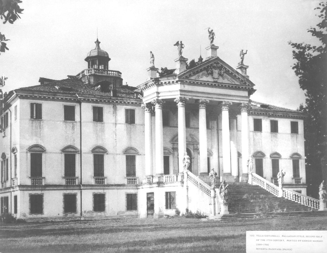 - Osservazioni: Ingressi monumentali con pilastri sormontati da statue raffiguranti i mesi. L'ingresso centrale, lungo il canale, è abbellito dalle statue di Apollo e Diana.