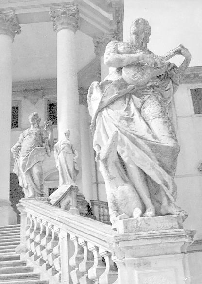 - Descrizione: Statue delle allegorie dei Cinque Sensi e della Ragione poste a decorazione della balaustra della scala di accesso.