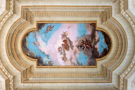 - Descrizione: Affresco del salone centrale raffigurante "Il Sacrificio di Curzio Rufo che si getta nella Voragine".