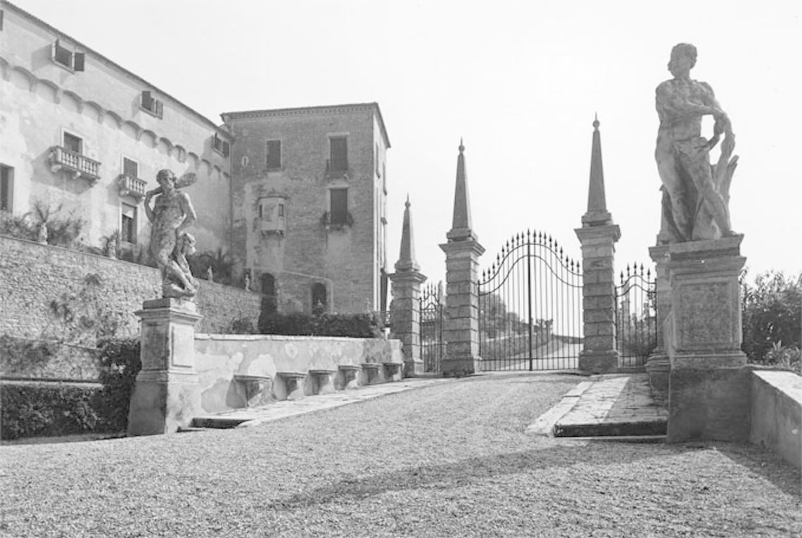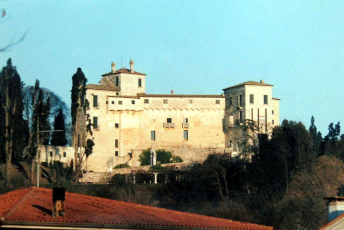 L'edificio sorge in posizione dominante sulle ultime propaggini dei colli Euganei; si presenta come un castello con torri e si sviluppa con una pianta poligonale attorno a una corte e preceduto da un giardino.Specifiche: