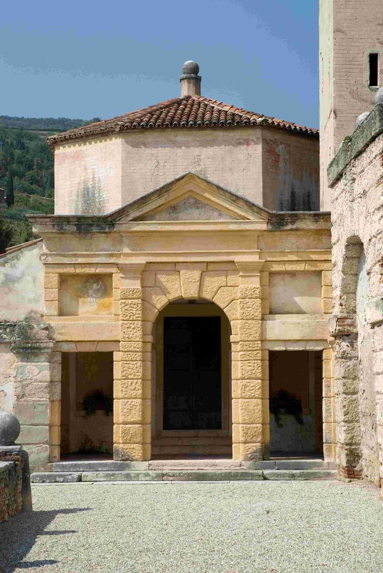 - Osservazioni: iscrizione del 1558. «Fece Michele ai signori conti della Torre veronesi una bellissima cappella a uso di tempio tondo con altare in mezzo, nella loro villa di Fumane». L'autorevole testimonianza vasariana, riportata anche dal Da Pozzo e dal Da Persico, non trova invece riscontro nei più recenti studi che, dopo averla attribuita a Giulio Romano (Fiocco), la considerano come opera non di un professionista per "le libertà (o le approssimazioni) di linguaggio che in essa si riscontrano" bensì dello stesso autore che ha gestito l'intera ideazione del complesso (Conforti in Bollettino CISA, XXIV, 1982-87).