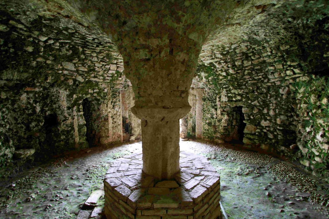- Descrizione: Nell'ambiente si leggono alcune tracce di colore presumibilmente riferibili a una perduta decorazione a grottesche, nonché un motivo di conchiglioni dipinti dietro le mensole destinate in origine ad accogliere la serie di diciotto calchi in gesso di statue antiche documentata dagli inventari seicenteschi.