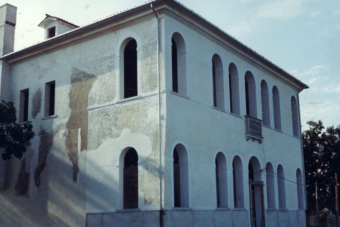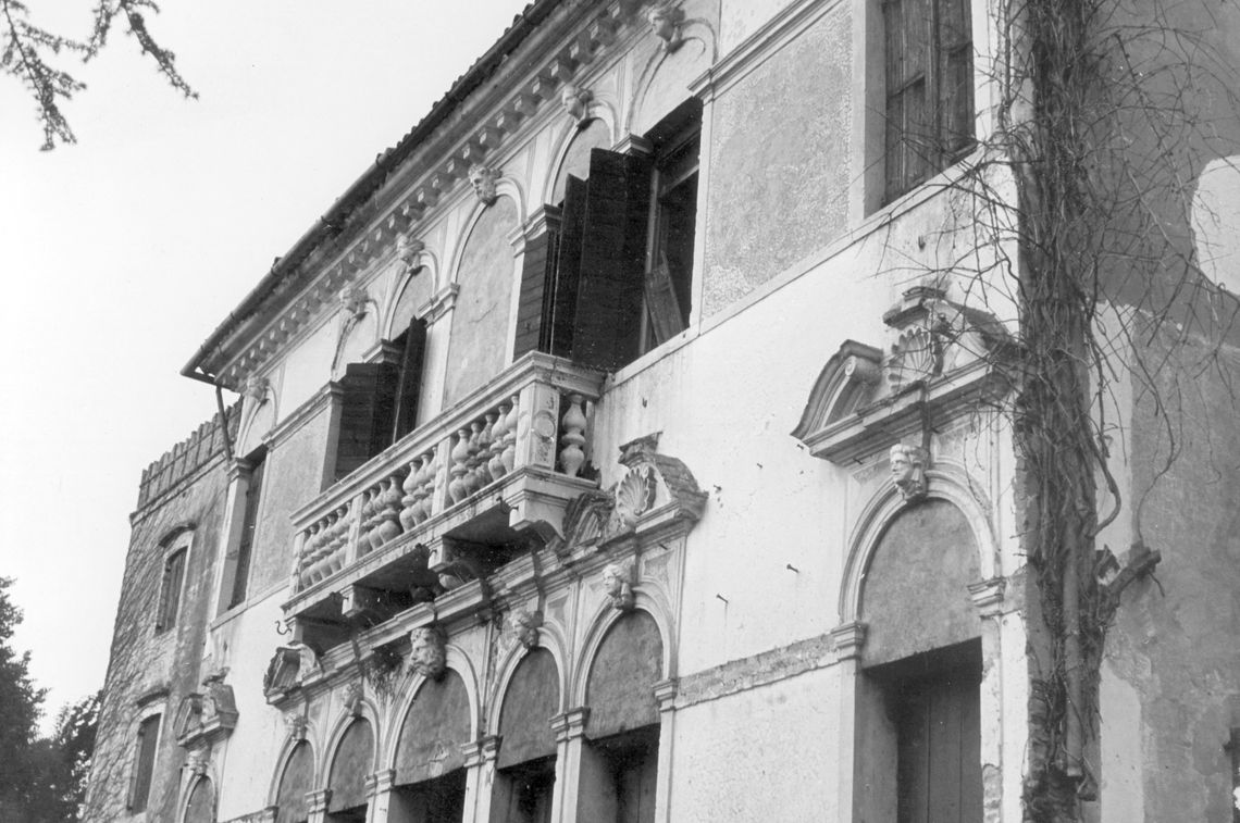- Descrizione: Un poggiolo marmoreo tripartito chiude la trifora del primo piano della facciata del corpo padronale verso il Sile.