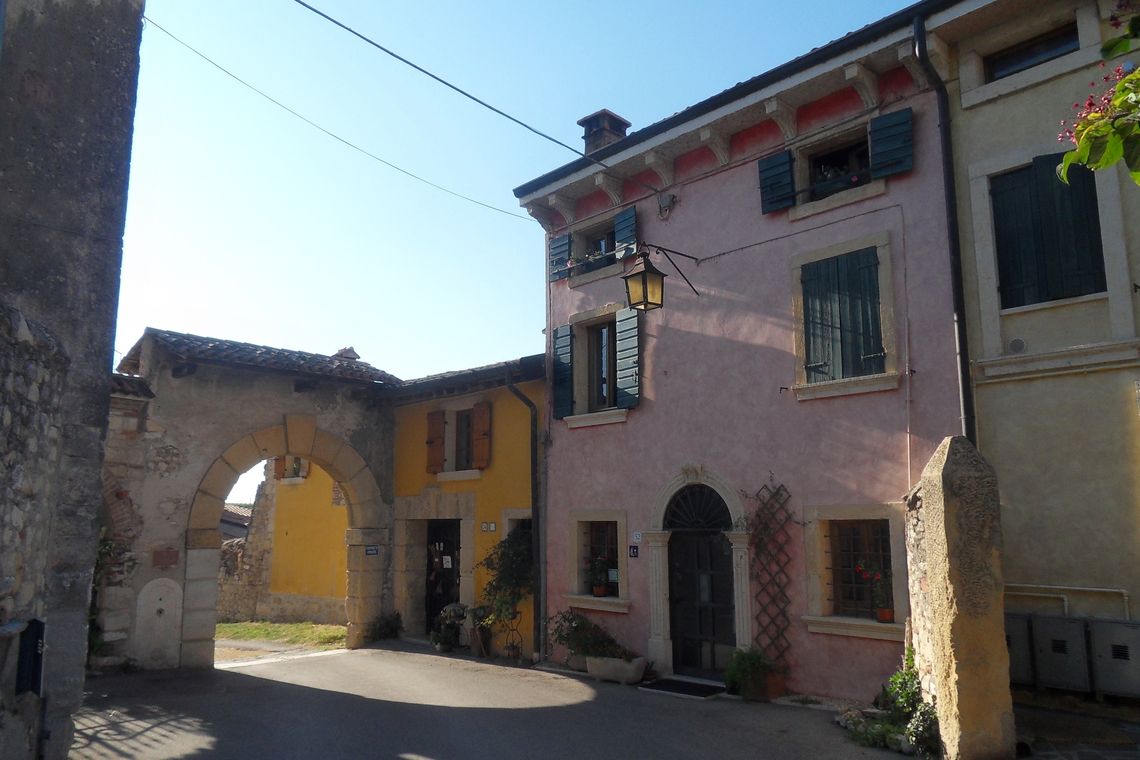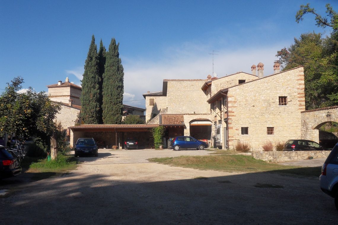 Il complesso sorge sul lato occidentale del colle di Castelrotto, piccola frazione a sud di San Pietro in Cariano, proprio sotto i resti dellantico castello, in un paesaggio fortemente caratterizzato dalla coltivazione di vigneti e uliveti a terrazzamenti. Vi si accede da una stretta e tortuosa strada che sale dalla piazza del paese e giunge in prossimità di un arco carrabile dingresso che immette in una corte stretta ed allungata, oggi non chiaramente leggibile nella sua unitarietà. Sullo sfondo sorge la casa padronale, perfettamente orientata secondo lasse nord-sud e caratterizzata da una loggia al primo piano; il lato occidentale è oggi occupato da una lunga cortina edificata ad andamento leggermente curvo, disomogenea nei caratteri architettonici ma ben sigillata agli estremi dal volume di due torri colombare, simili tra loro. Il lato orientale della corte è invece in parte occupato a nord da una seconda piccola corte edificata, chiusa ed autonoma rispetto alla prima; mentre a sud è presente un varco che consente laccesso alla parte sommitale del colle.Specifiche: