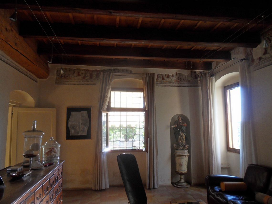 - Descrizione: Alcune finestre del prospetto sulla corte sono riquadrate da grosse cornici in pietra modanata; in alcuni casi il davanzale è sorretto da mensoline a voluta