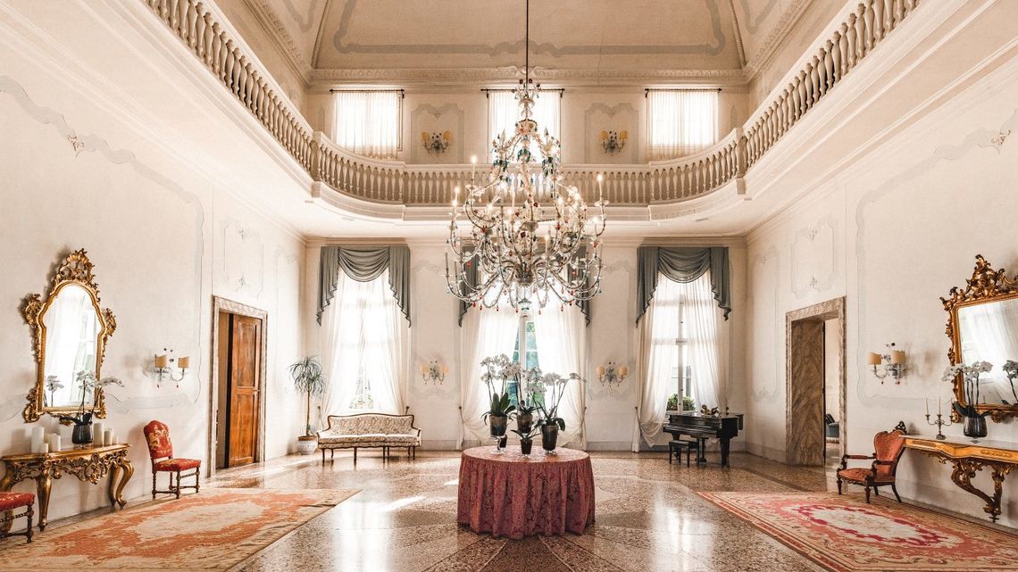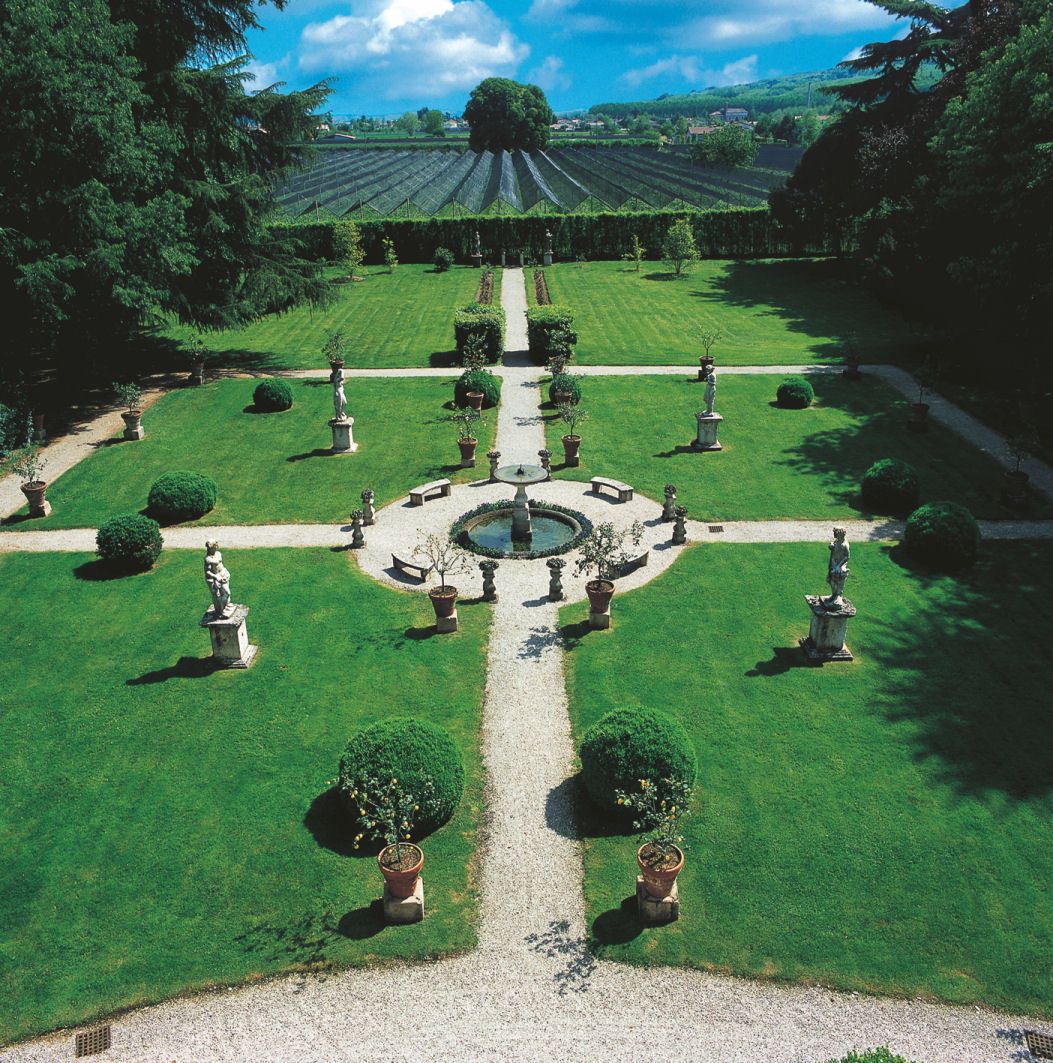 - Descrizione: L'ingresso alla proprietà è marcato da cancelli sostenuti da quattro pilastri a bugnato sormontati da statue.