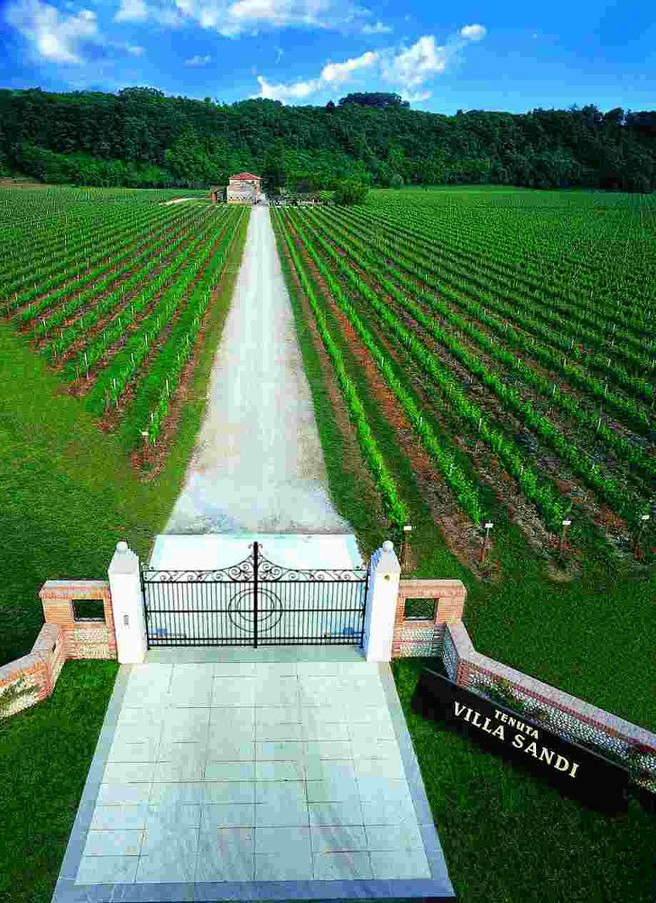 - Descrizione: Sul prospetto principale, al centro del frontone, è affisso lo stemma della famiglia Sandi.
