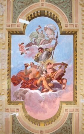 - Descrizione: 010639 - Visione d'insieme del soffitto con "Dei dell'Olimpo" e prospettive architettoniche.
