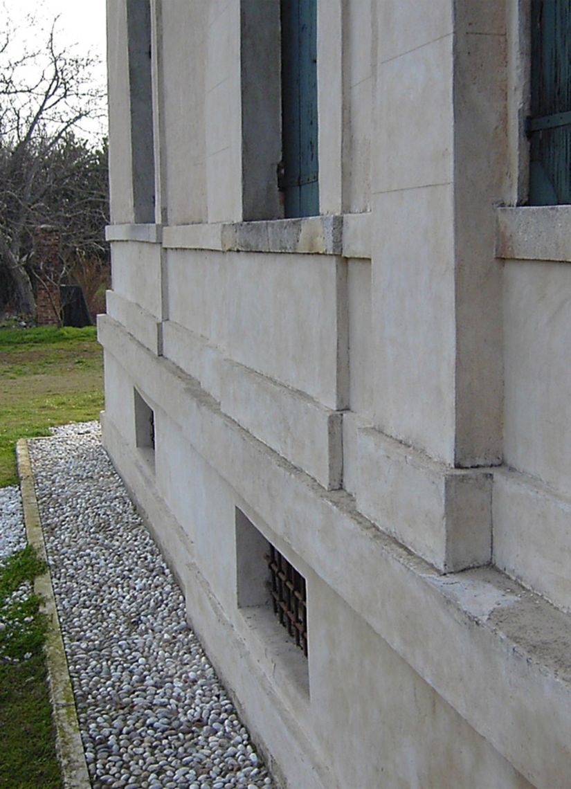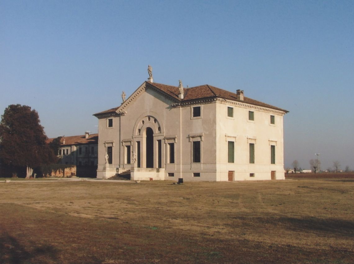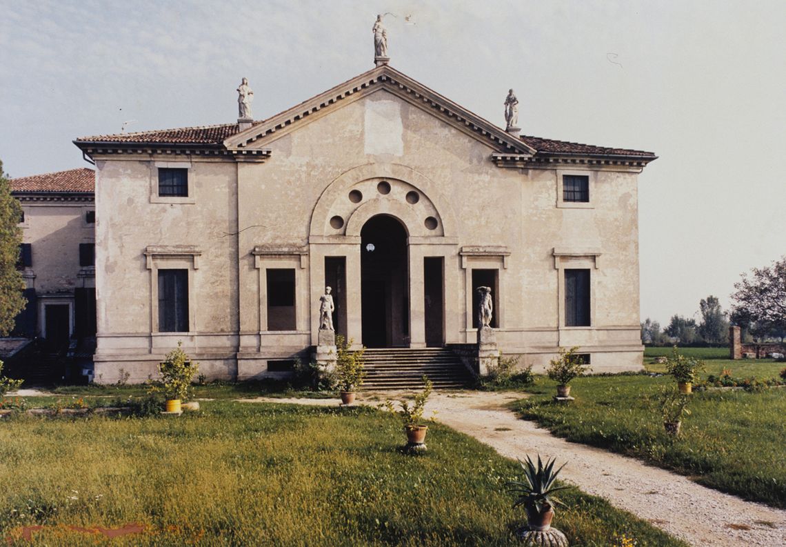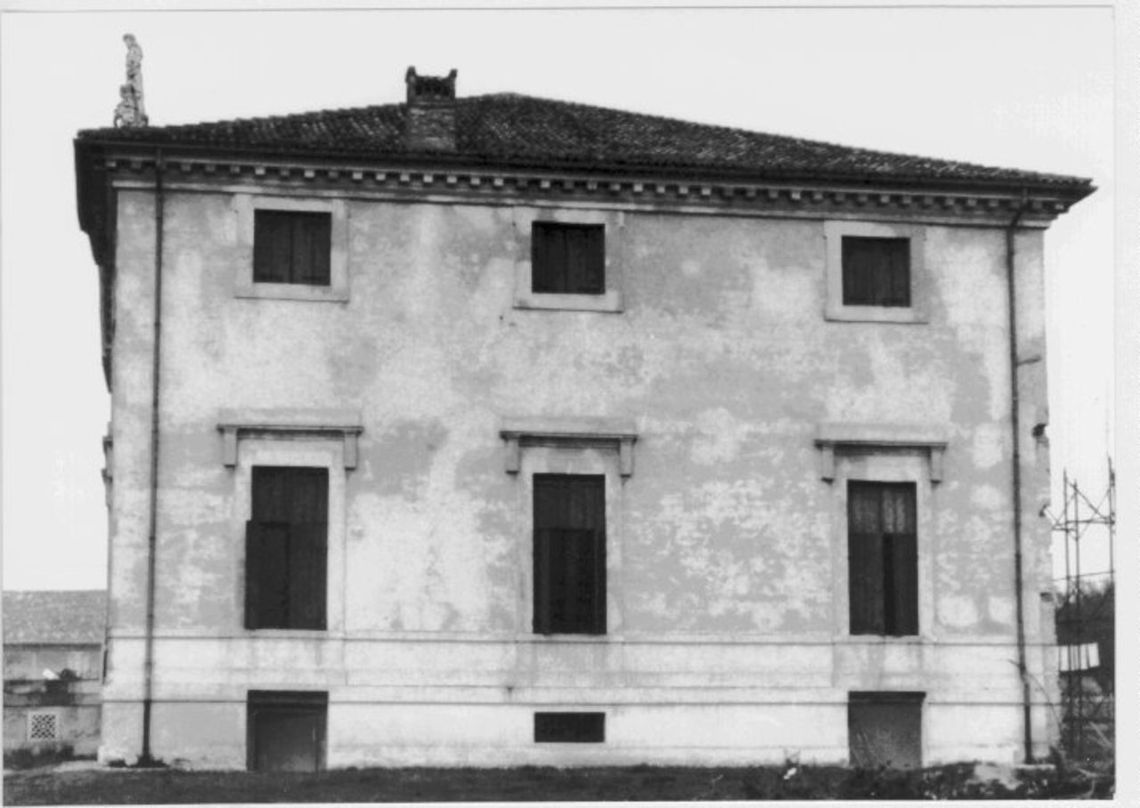 - Osservazioni: Il prospetto principale è rivolto a nord-ovest, il cui settore mediano avanza in maniera impercettibile. La parte centrale è dominata da una loggia con serliana sormontata da una doppia ghiera contenente cinque oculi e impostata su severi pilastri quadrati in muratura. Ai lati quattro finestre architravate sopra le quali si aprono due finestre quadrate; la parte centrale termina con un frontone a base spezzata e coronato da statue. Lo stesso schema, con differenze minime si presenta per il prospetto a sud-est.