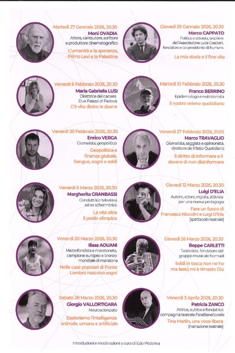 A guidare questa intensa narrazione sarà Iliass Aouani, mezzofondista e maratoneta di fama internazionale, campione europeo e bronzo mondiale di maratona. Attraverso il suo intervento intitolato "Nelle case popolari di Ponte Lambro nascono sogni", l'atleta condividerà una sintesi magistrale tra la fatica dello sport di alto livello e il valore sociale della propria storia personale. Come per l'intera rassegna, l'introduzione e la moderazione della serata saranno affidate alla competenza di Ezio Pederiva.