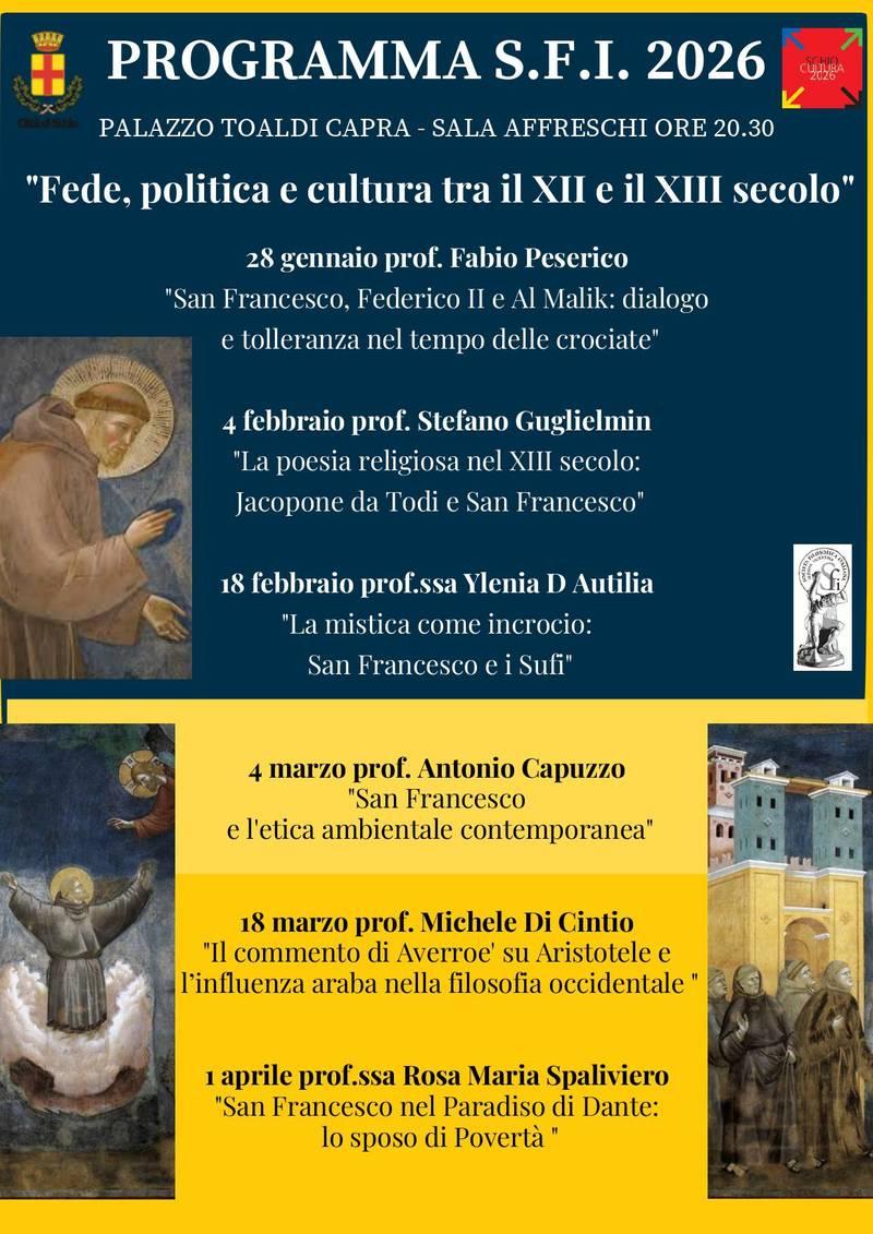 - 28 gennaio: San Francesco, Federico II e Al Malik: dialogo e tolleranza nel tempo delle crociate - prof. Fabio Peserico