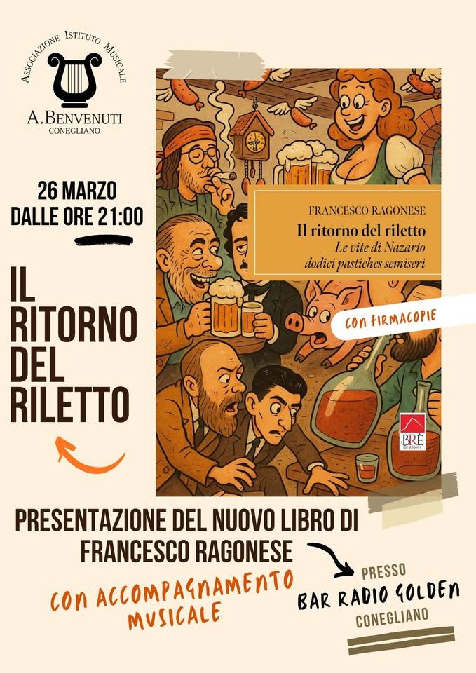Giovedì 26 marzo alle ore 21:00, presso il Bar Radio Golden di Conegliano, viene presentato "Il ritorno del riletto. Le vite di Nazario dodici pastiches semiseri": il nuovo libro di Francesco Ragonese.