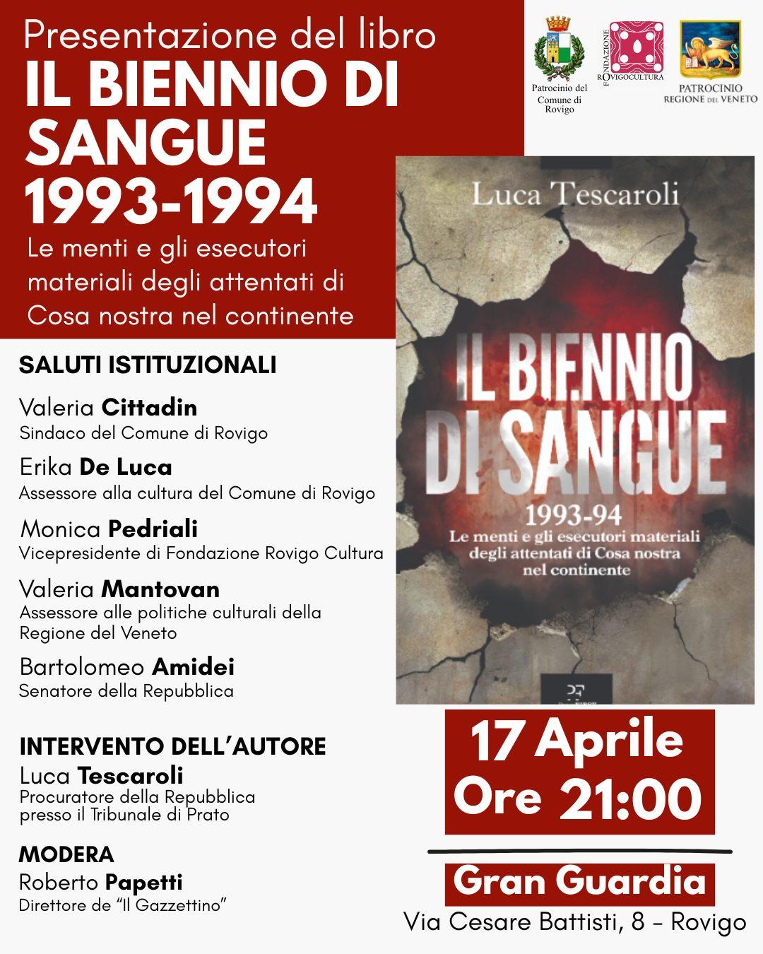Il libro "IL BIENNIO DI SANGUE 1993-1994. Le menti e gli esecutori materialli degli attentati di Cosa nostra nel continente" ricostruisce, per voce del suo autore Luca Tescaroli, le fasi che hanno portato all’individuazione e alla condanna degli esponenti di Cosa nostra.