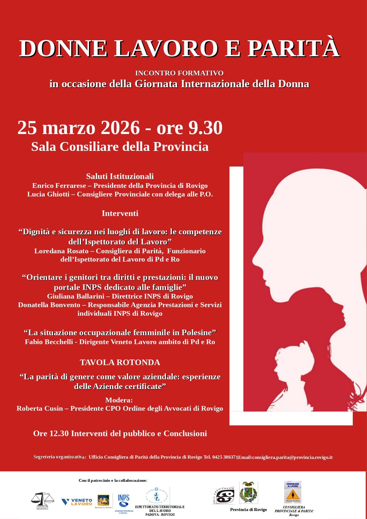 Segreteria organizzativa: Ufficio Consigliera di Parità della Provincia di Rovigo Tel. 0425 386371Email:consigliera.parita@provincia.rovigo.it