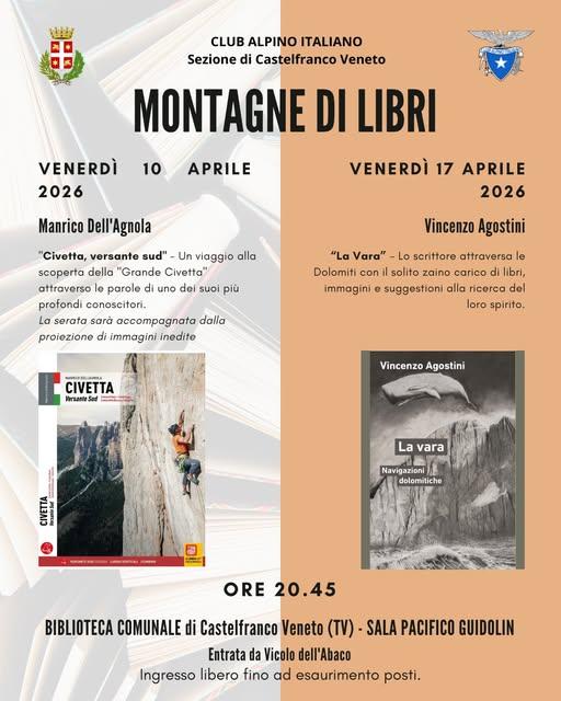 La rassegna culturale Montagne di Libri, organizzata dal Club Alpino Italiano della sezione di Castelfranco Veneto, propone due appuntamenti serali dedicati al legame profondo tra l'alpinismo e la letteratura.