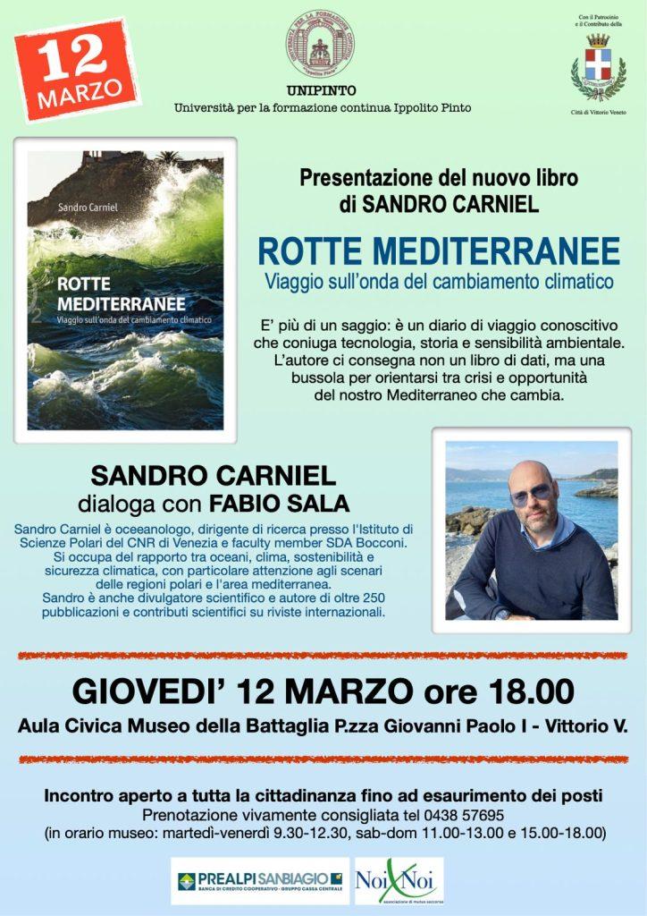 Presentazione del nuovo libro di Sandro Carniel, un oceeanologo, dirigente di ricerca presso l’Istituto di Scienze Polari del CNR di Venezia e faculty member SDA Bocconi, “Rotte Mediterranee, viaggio sull’onda del cambiamento climatico”.