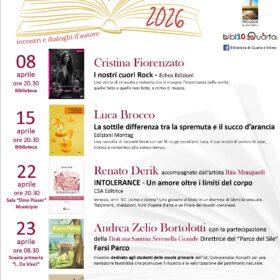 Il programma di "Quarto Racconta 2026" prevede 5 incontri con gli autori, di cui uno riservato agli studenti delle scuole primarie.