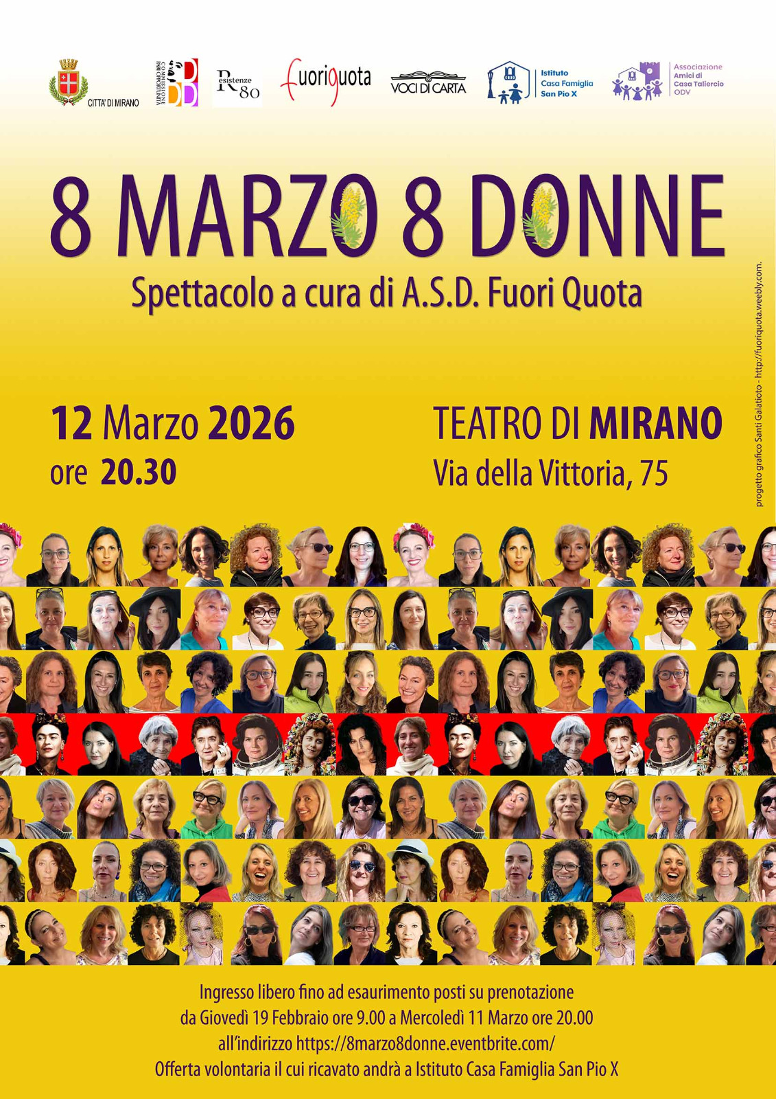 Ingresso libero con prenotazione (fino a esaurimento posti) entro mercoledì 11 marzo ore 20.00: https://8marzo8donne.eventbrite.com