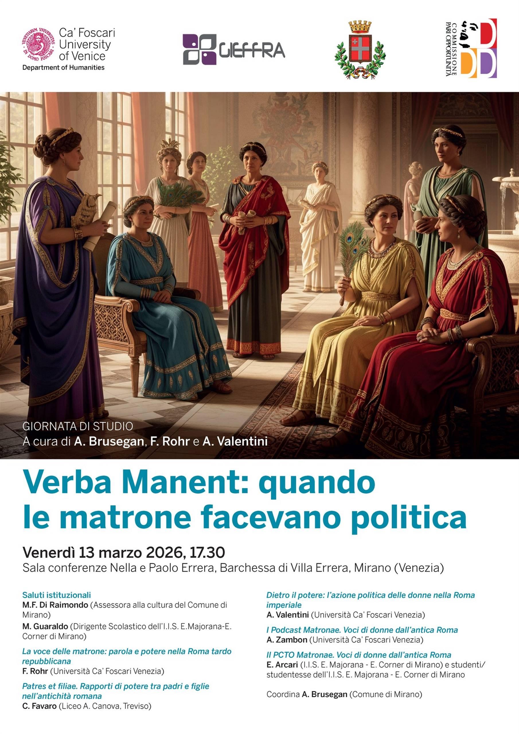 Conferenza “Verba Manent: quando le matrone facevano politica”, a cura dell’Università Ca’ Foscari di Venezia.