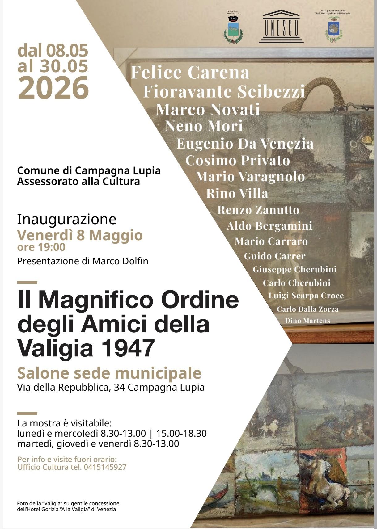 La mostra vuole rendere omaggio ai 27 artisti veneziani che nel 1947 fondarono il Magnifico Ordine degli Amici della Valigia.