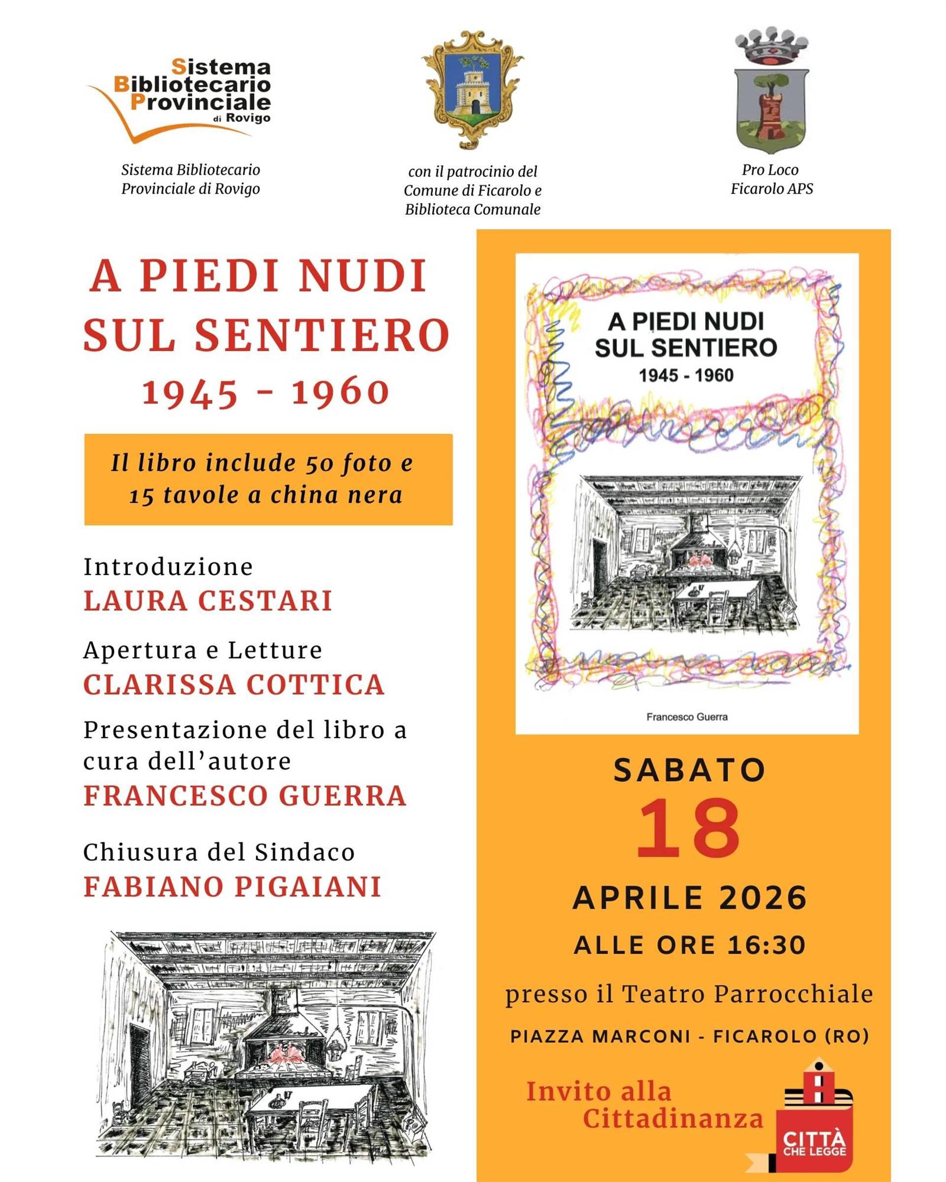 Le pubblicazioni su Ficarolo si arricchiscono della nuova opera di Guerra. "A piedi nudi sul sentiero" ci porta nel periodo tra il 1945 e il 1960, includendo 50 foto e 15 tavole a china nera. Un libro che parla del cuore profondo del nostro territorio.