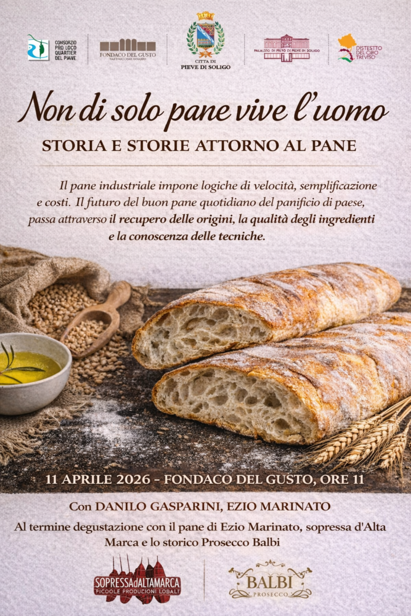 L'incontro non si limiterà alle sole parole, ma coinvolgerà i sensi in un’esperienza conviviale autentica. Al termine degli interventi, i presenti avranno il piacere di partecipare a una degustazione d'eccellenza, dove il pane fragrante di Ezio Marinato incontrerà i sapori decisi della Sopressa d'Alta Marca e le bollicine dello storico Prosecco Balbi. Un'occasione imperdibile per celebrare il valore della lentezza e la bellezza delle produzioni locali.