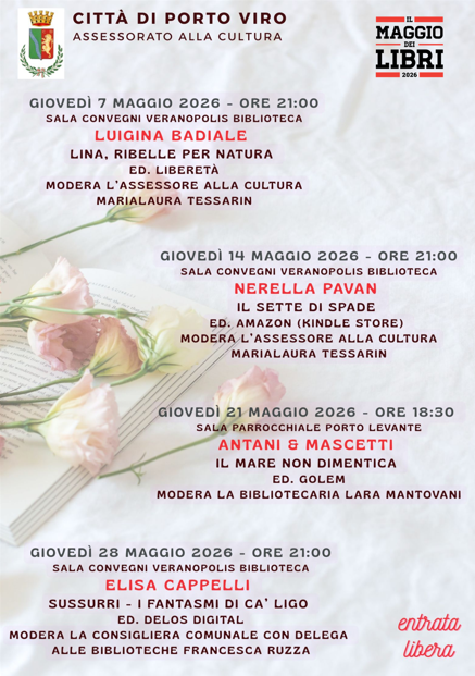 Il Comune di Porto Viro, attraverso l’Assessorato alla Cultura, presenta l’edizione 2026 de Il Maggio dei Libri, una rassegna dedicata alla promozione della lettura e all’incontro diretto con gli autori.