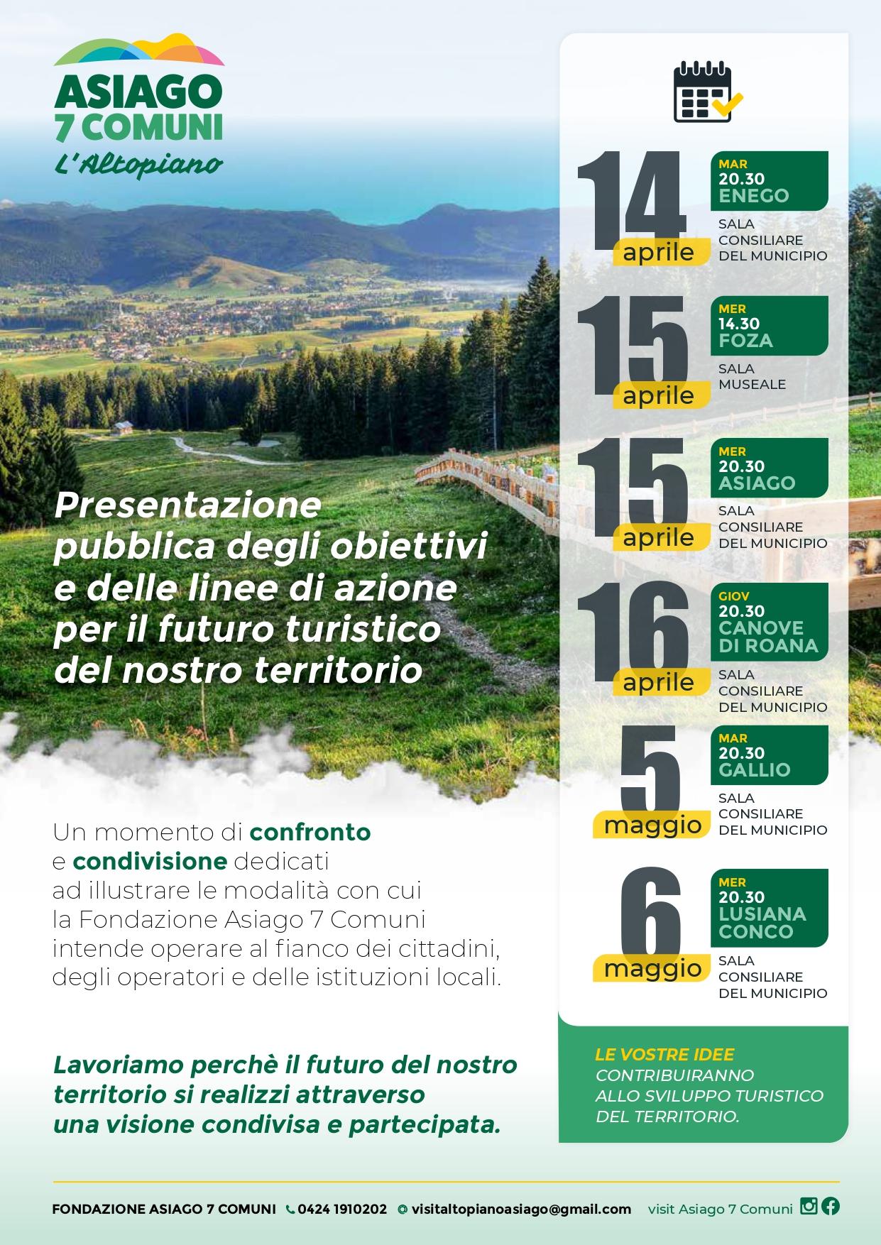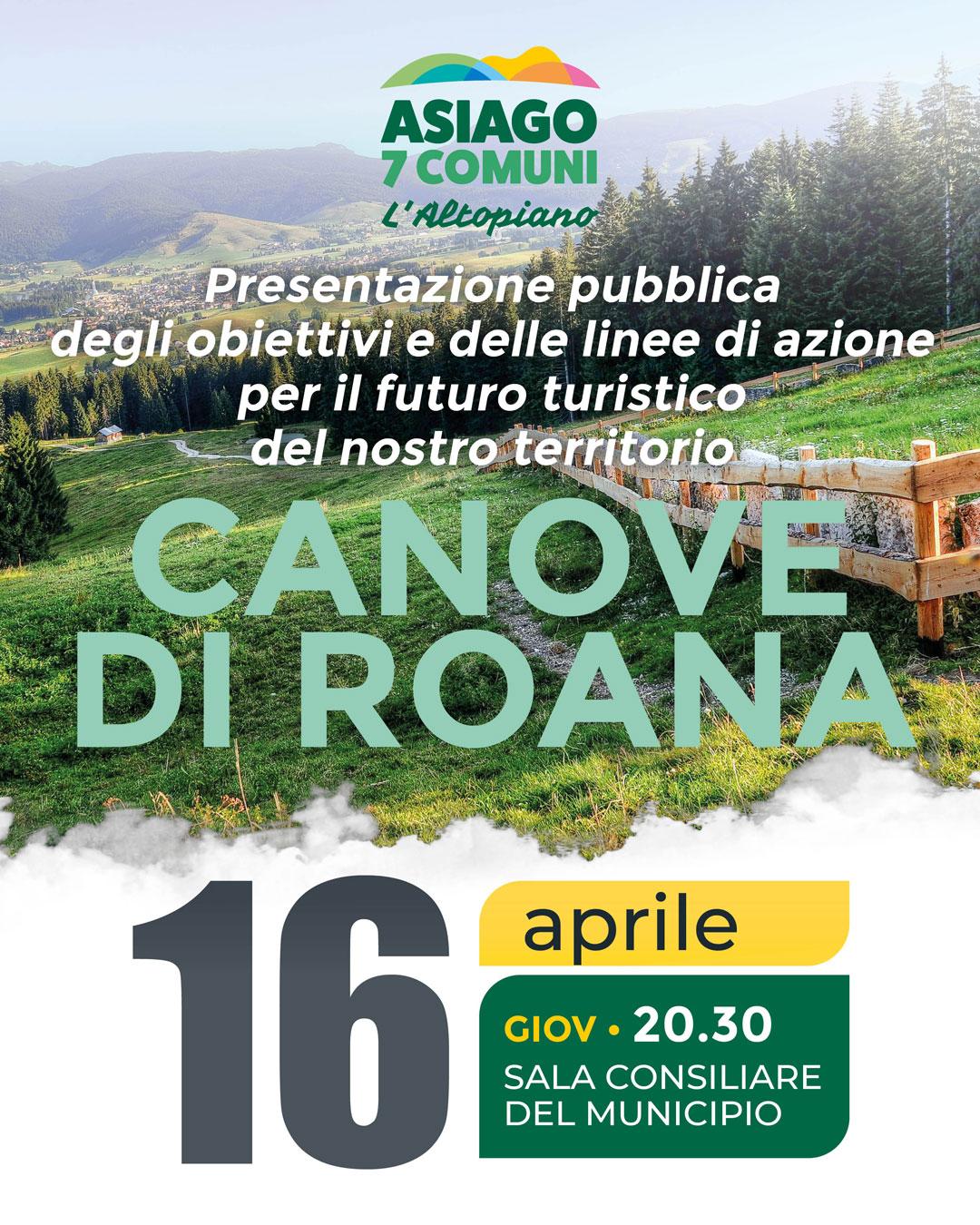 Il calendario prevede, per il Comune di Roana, un incontro per il giorno giovedì 16 aprile alle ore 20.30 presso la sala consiliare del Comune di Roana (c/o municipio a Canove di Roana).