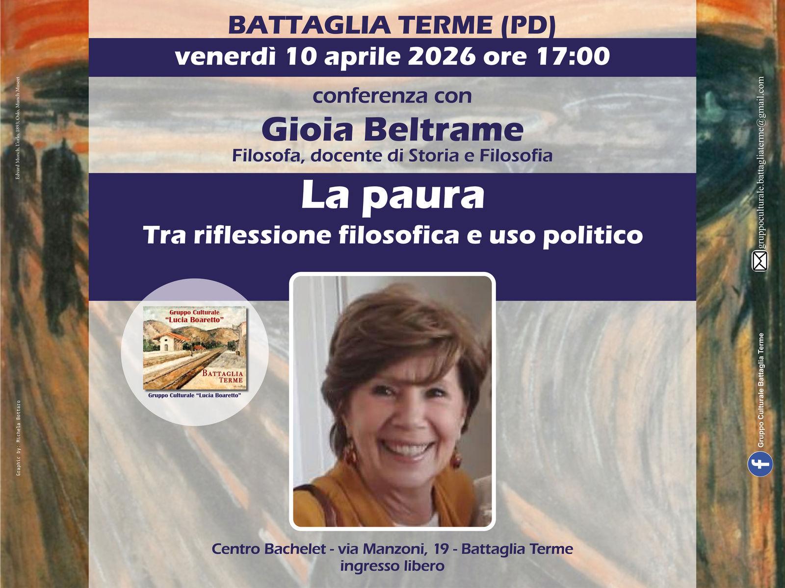 Conferenza con Gioia Beltrame, filosofa, docente di Storia e Filosofia. Ingresso libero.