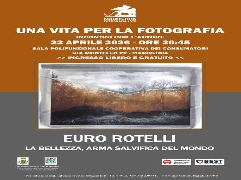 Marostica rende omaggio a Euro Rotelli, fotografo di rara sensibilità e umanità, con un incontro intenso e riflessivo promosso da Marostica Fotografia 1979. Rotelli ci parla di una fotografia che non si limita a ritrarre il mondo, ma lo riguarda con compassione, rivelando la bellezza come forza capace di redimere, unire, risvegliare. Un incontro con l’autore per ascoltare storie nate dalla luce, dal silenzio e dal coraggio di guardare.