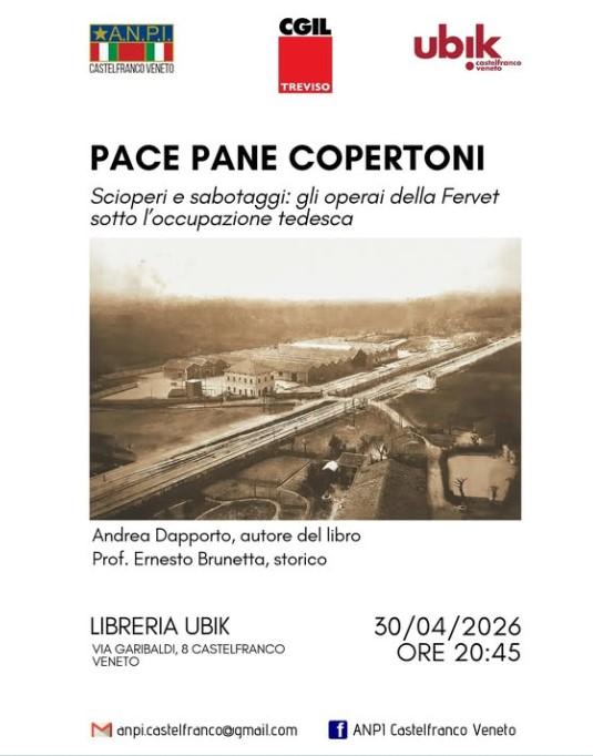 Giovedì 30 aprile 2026, alle ore 20:45, la Libreria Ubik di Castelfranco Veneto ospita la presentazione del libro "Pace Pane Copertoni".