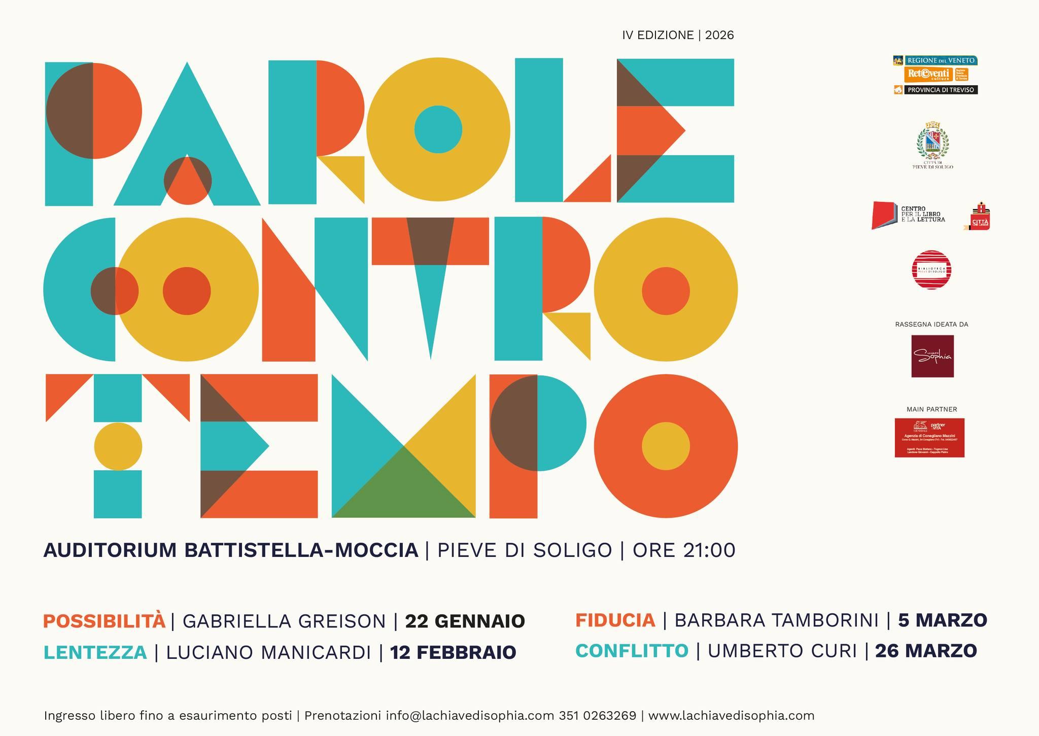 La rassegna Parole Controtempo, ideata e curata da La Chiave di Sophia, giunge alla sua quarta edizione e si presenta come un viaggio, in compagnia di grandi pensatrici e pensatori della nostra epoca, attraverso le parole che esprimono il concetto del contemporaneo e lo esplorano da vicino, ma che ad oggi sono anche abusate o incomprese e perciò chiedono di essere rivalutate.