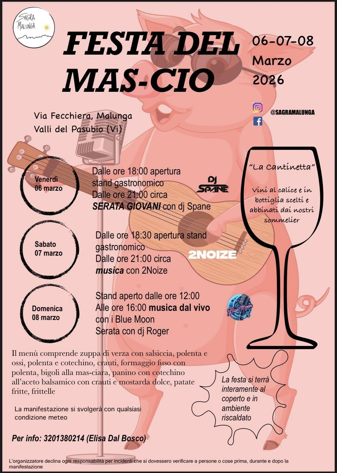 Nei giorni 6-7-8 marzo 2026 si terrà la "Festa del Mas-cio" a Malunga, Valli del Pasubio.