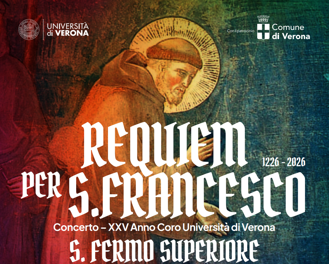 Venerdì 10 aprile 2026 alle ore 21.00 nella Chiesa di S. Fermo Maggiore, il Coro dell'Università di Verona presenta il Requiem per San Francesco, evento realizzato in collaborazione tra il Coro dell'Università di Verona, diretto da Marcello Rossi Corradini e il Coro dell’Università di Losanna, diretto da Fruzsina Szuromi.