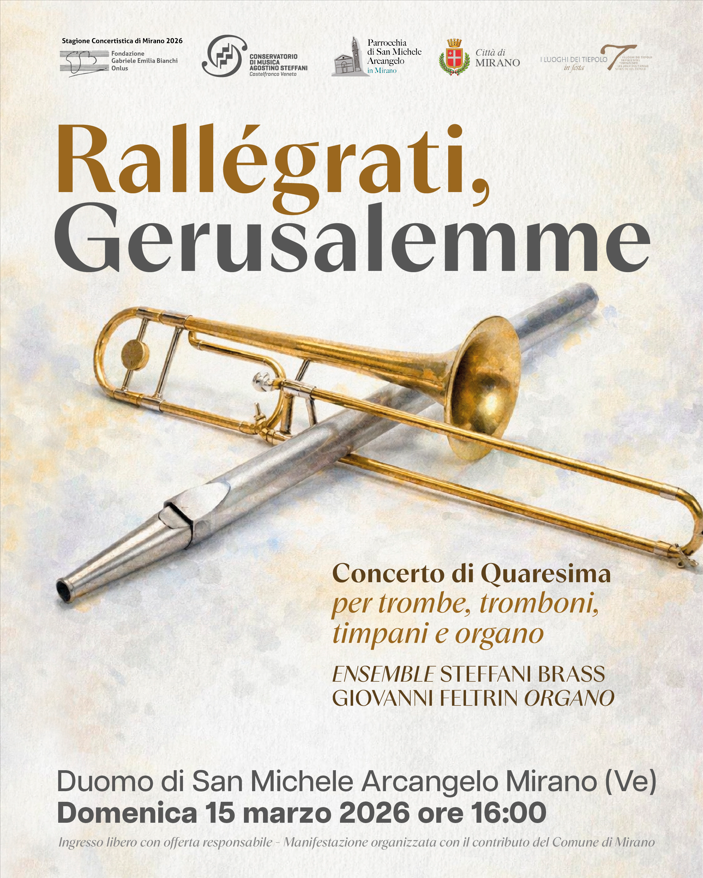 Domenica 15 marzo sarà proposto il concerto di Quaresima “Rallégrati Gerusalemme” alle ore 16.00 nel Duomo di S. Michele Arcangelo a Mirano.