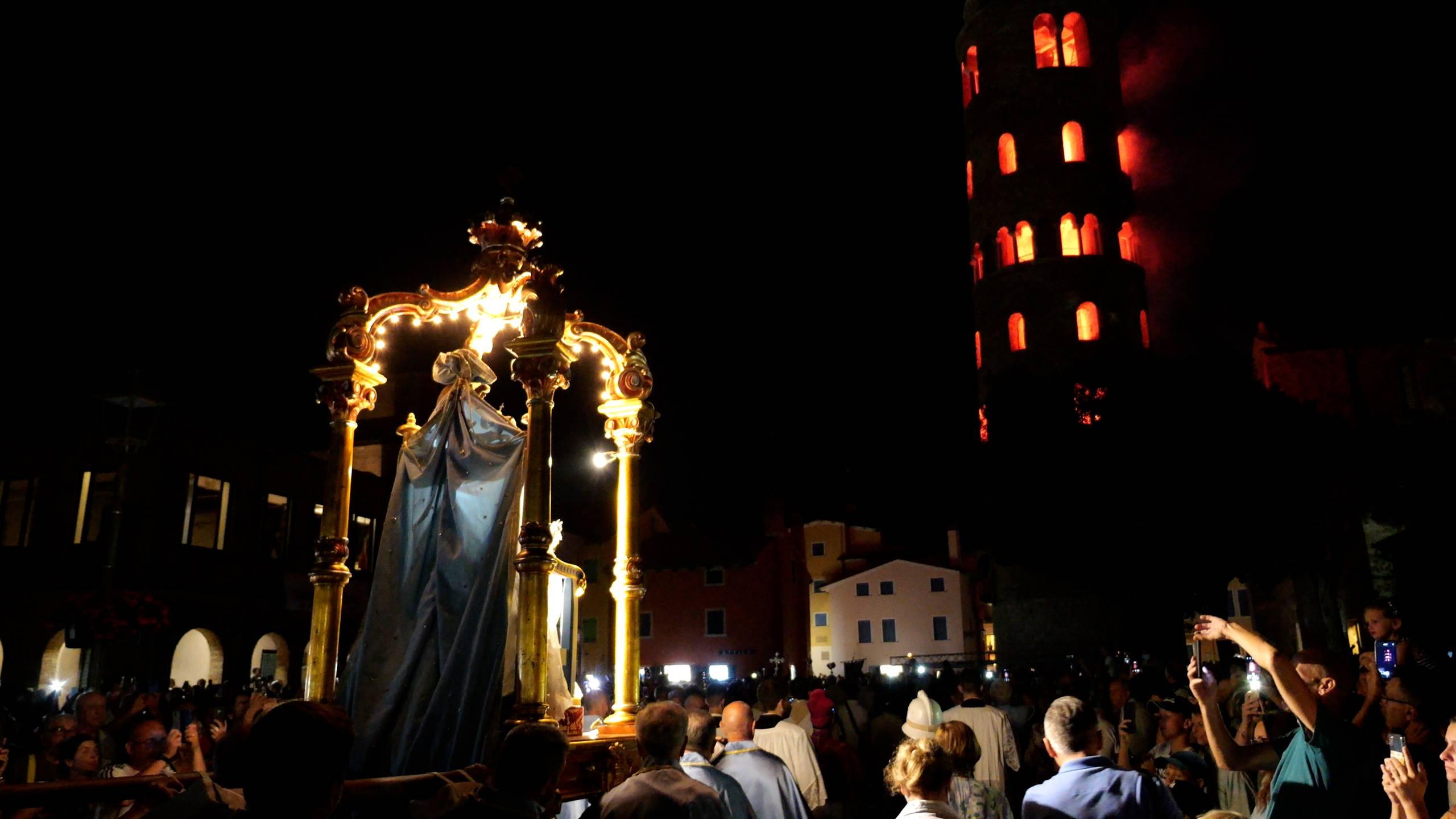Anche quest’anno durante il secondo fine settimana di luglio, Caorle ricorda le sue tradizioni storico/religiose attraverso la suggestiva processione con incendio del Campanile, che inizierà sabato 11 con la celebrazione della S. Messa alle ore 21.00 e che continuerà poi con la processione della statua della Madonna dell’Angelo dal Santuario al Duomo e l’incendio del Campanile verso le ore 22.00.