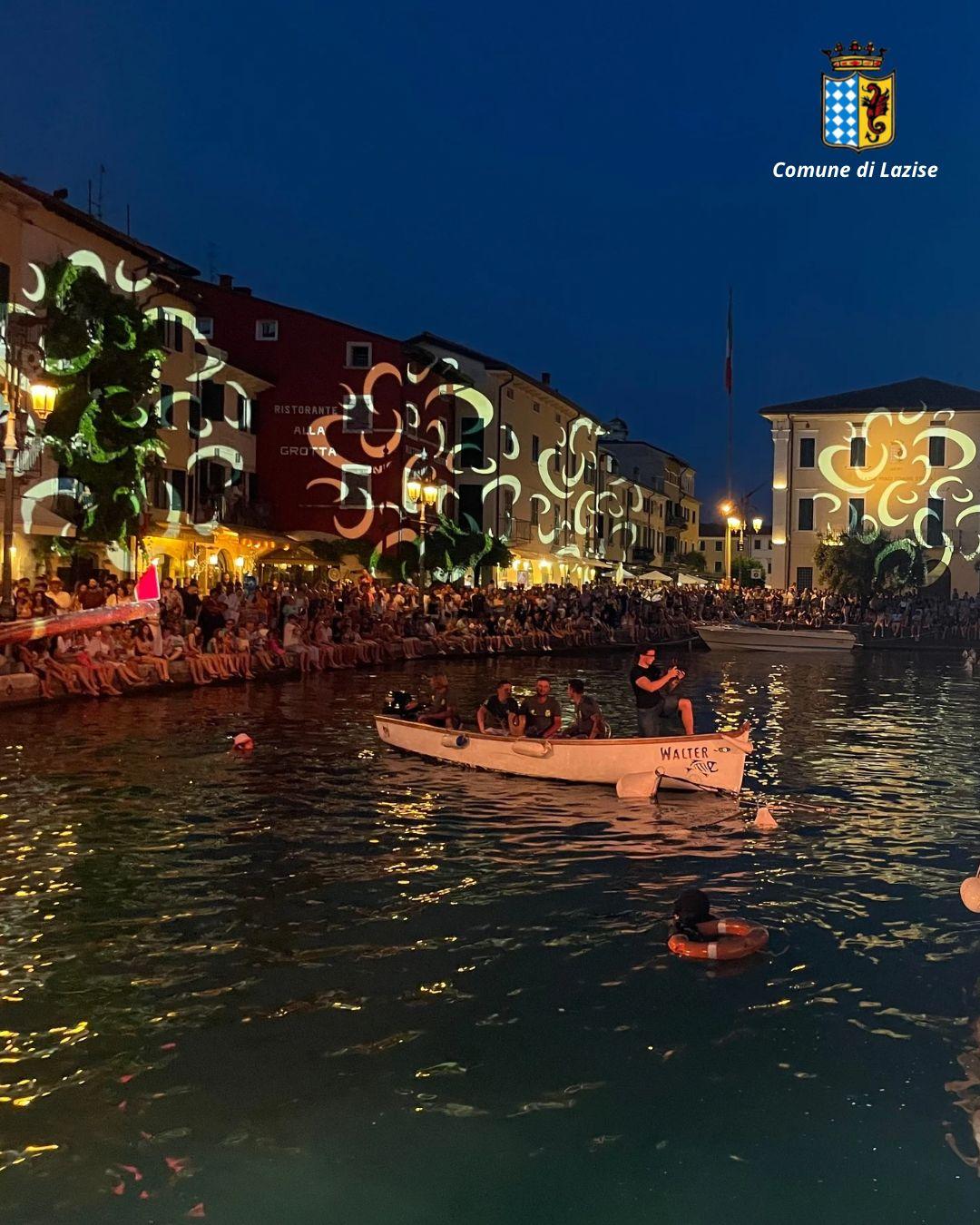 Essendo un popolo di lago, gli abitanti di Lazise hanno trasformato il palo verticale in un palo orizzontale ben igrassata posto sull'angolo del porto antico con una bandiera all'estremità, la quale bisogna staccare e tenere in mano durante il conseguente tuffo in acqua per poter reclamare il premio.