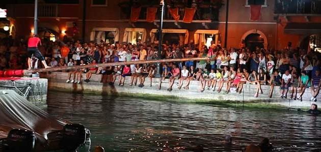 Questa gara è diventata una delle manifestazioni più caratteristiche di Lazise e del lago e consiste nel percorrere di corsa il palo, impregnato di grasso, a piedi nudi per riuscire a staccare la bandierina collocata sulla punta. Da sempre i buteloti, i giovanotti di Lazise, amano cimentarsi in questa gara, esilarante per i spettatori ma non sempre indolore per i partecipanti.