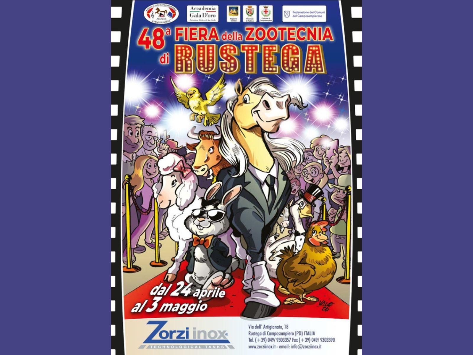 Data la sua forte storicità e coadiuvata dalle associazioni regionali di settore, la fiera di Rustega porta come protagonisti tutti gli animali da allevamento partendo dagli equini, con una presenza delle razze che si trovano nel territorio del Nord-Est, e dai bovini dove per anni è stata protagonista la razza Frisona tramite appositi concorsi regionali.