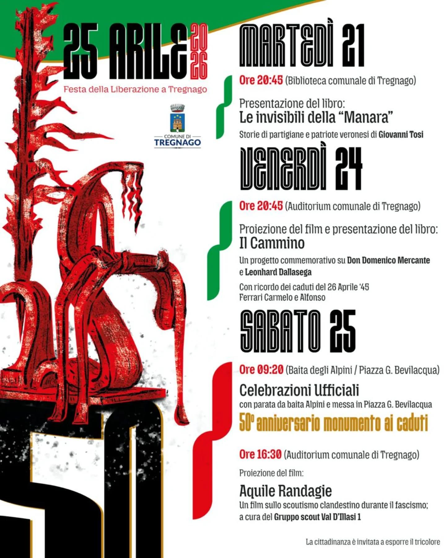 Nel segno della memoria condivisa, come fondamento di pace e strumento per contrastare ogni forma di guerra, l’Amministrazione comunale di Tregnago promuove un programma di iniziative in occasione del 50° anniversario del Monumento ai Caduti di Piazza Bevilacqua e delle celebrazioni della Liberazione d’Italia.