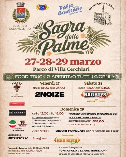 Nei giorni 27-28-29 marzo 2026 si terrà la "Sagra delle Palme" nel parco di Villa Cerchiari a Isola Vicentina.